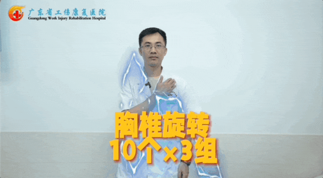 全程保持身体其他部位不动,左右胸椎在动作时稍有一定的对抗性,确保旋转拉伸的效果。