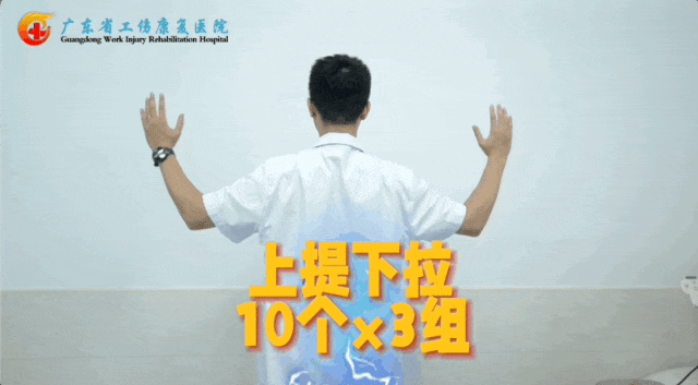 站直,双肩打开,做上下提拉的动作。从后面看,手臂与肩背应始终保持同一平面上。