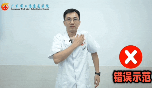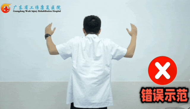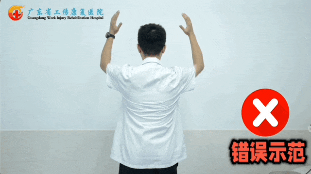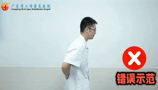 错误动作:身体没有站直,耸肩驼背,手臂的位置不够。