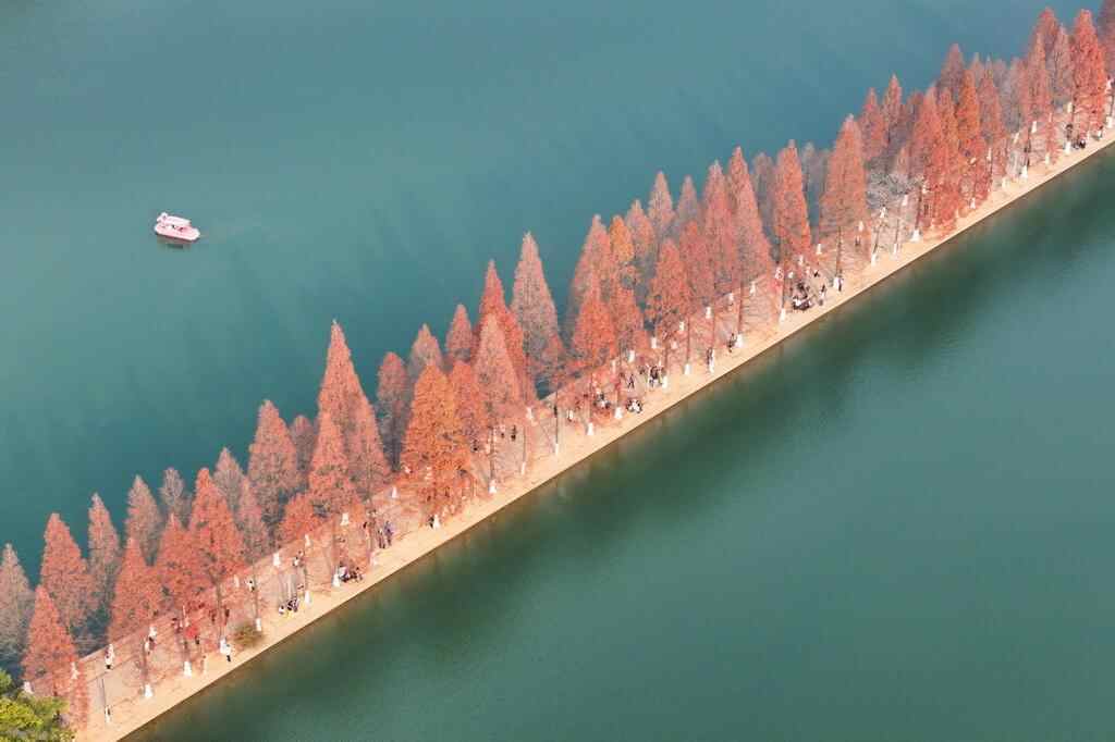 连日来,湖南省长沙市烈士公园的水杉树叶转红,在冬日暖阳的映照下,园内景色如画,吸引不少市民前来游玩打卡。新华社记者 陈思汗 摄