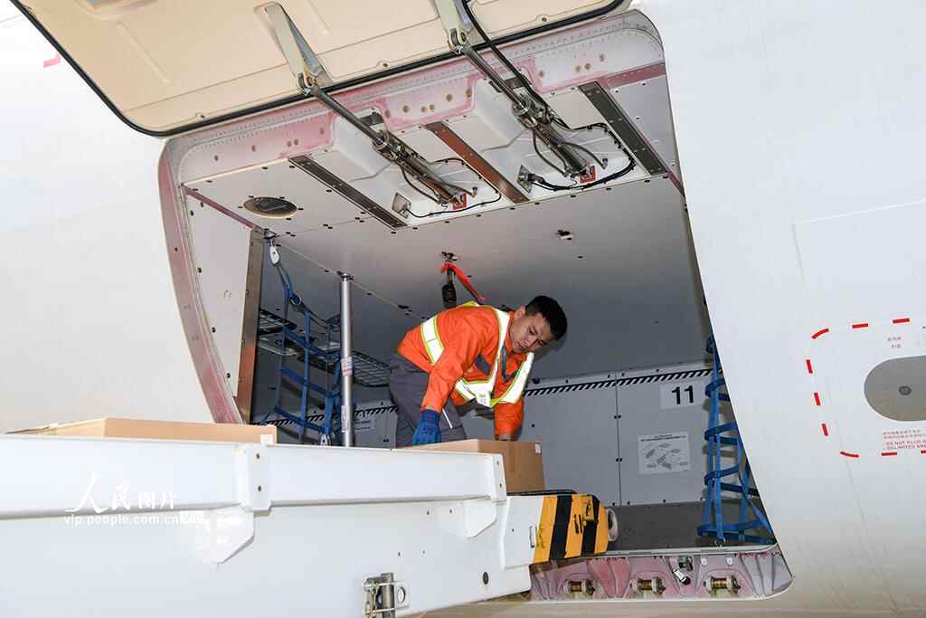 2025年12月18日,海南自贸港全岛封关运作正式启动。海口美兰机场“二线口岸”封关运作后,首批享受加工增值免关税政策的货物顺利出岛。苏弼坤摄(人民图片网)