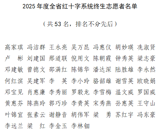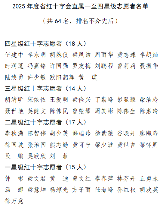 近日,2025年度广东省星级红十字志愿者认定已经落下帷幕。