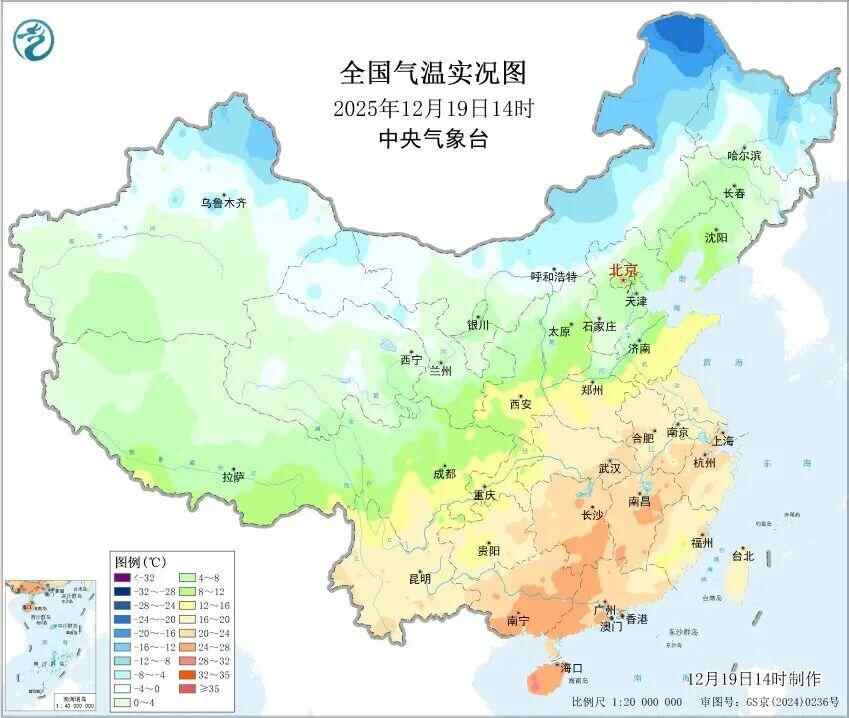昨天(12月19日),不仅是广东的天气回暖了不少,我国中东部大部气温普遍冲至近期高点,一些地方还刷新了历史纪录。