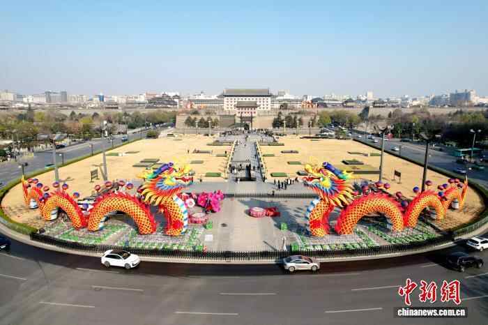 图为南门南广场上的巨龙灯组。(无人机照片)中新社记者 张远 摄