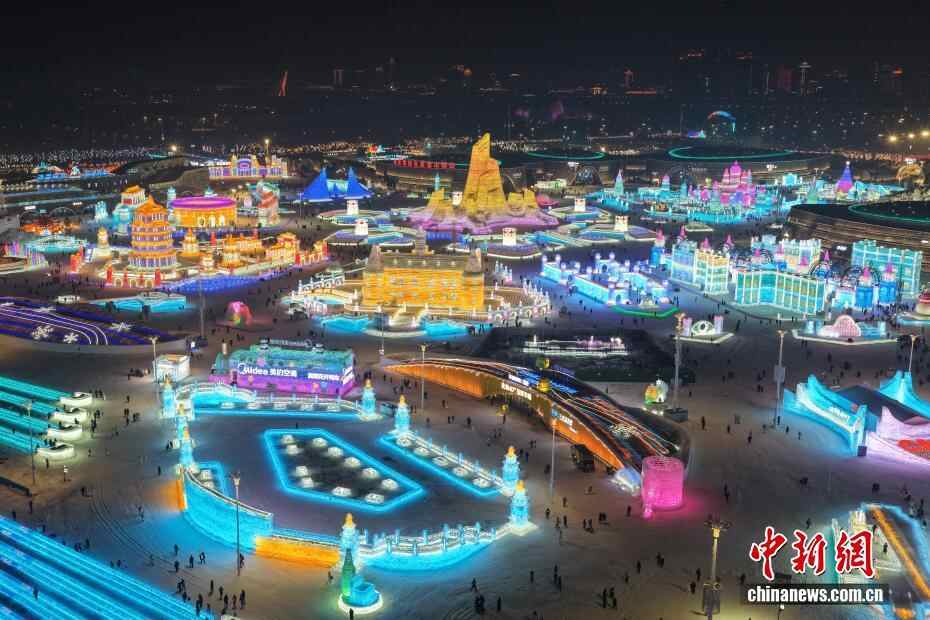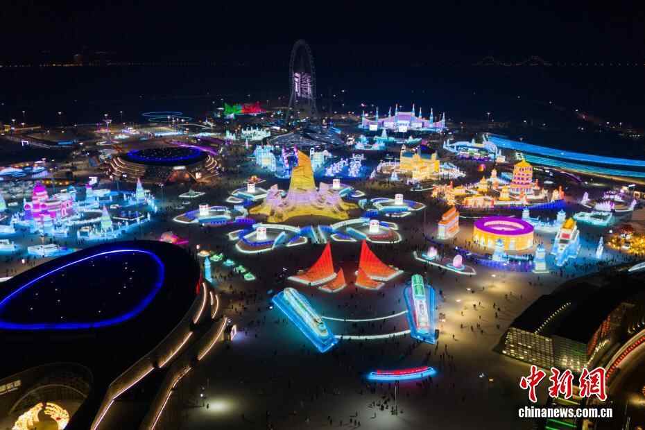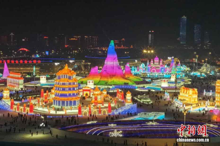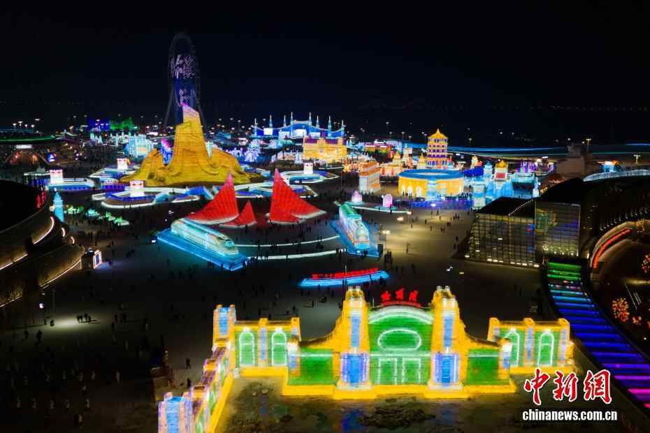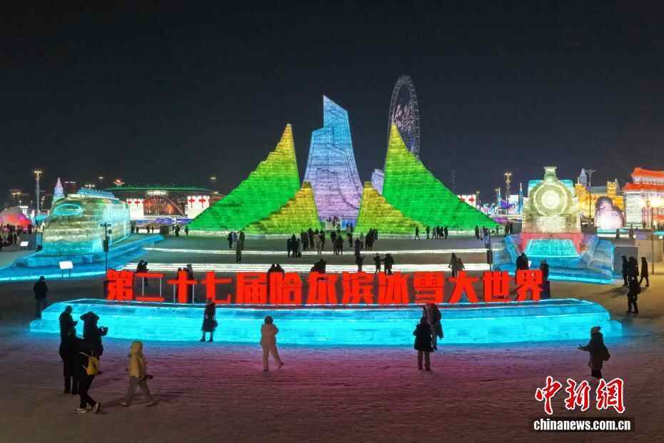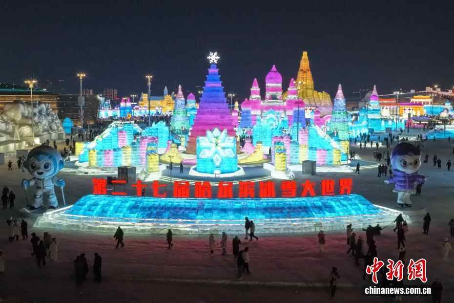 第二十七届哈尔滨冰雪大世界夜色美如画