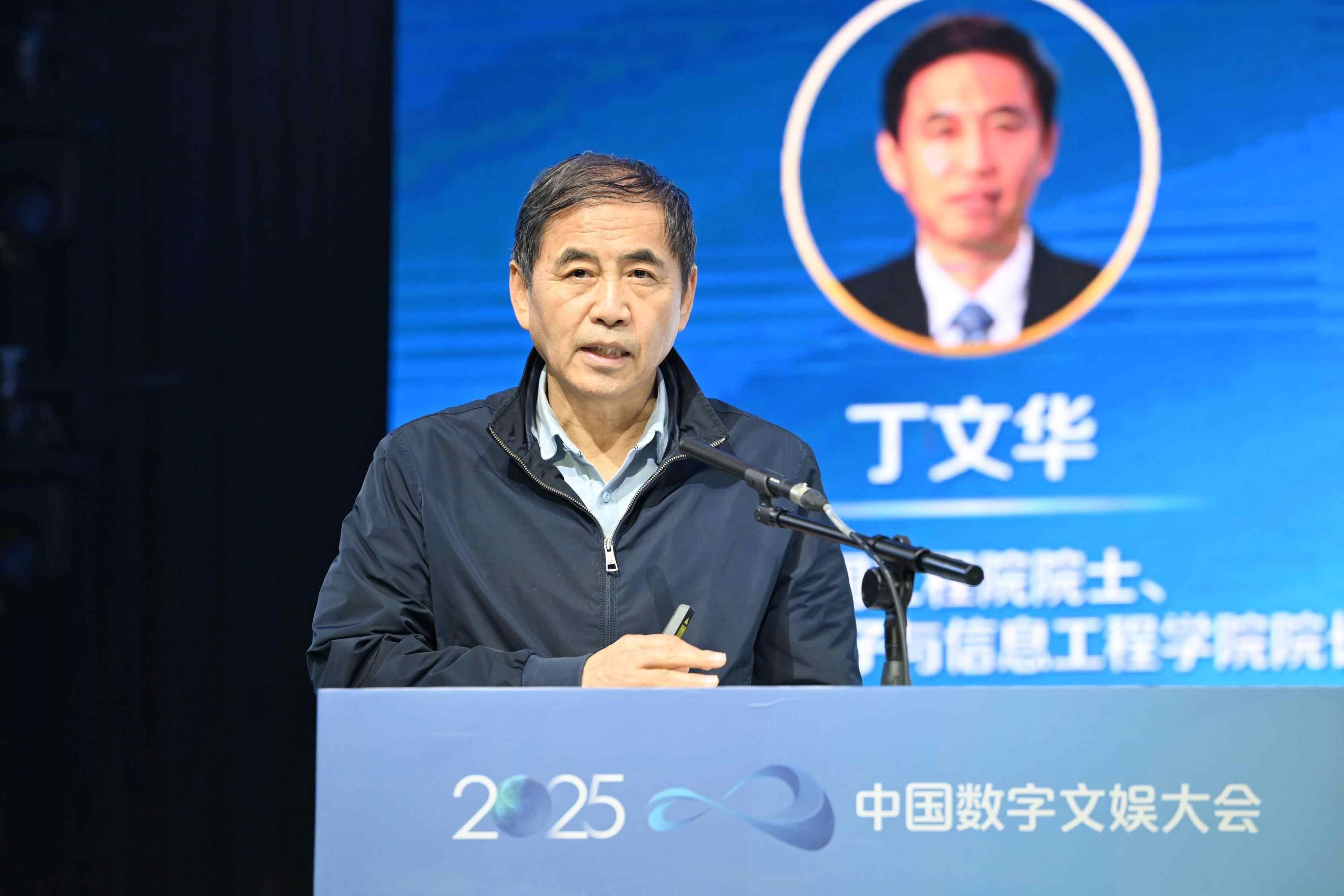 主论坛环节,中国工程院院士、深圳大学电子与信息工程学院院长丁文华以《LMM/AIGC助力数字文娱发展》为题发表主旨演讲。