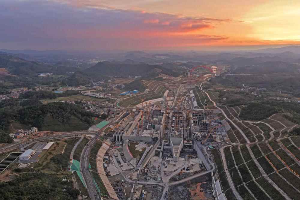 这是11月11日拍摄的广西平陆运河马道枢纽施工现场(无人机照片)。新华社记者 周华 摄