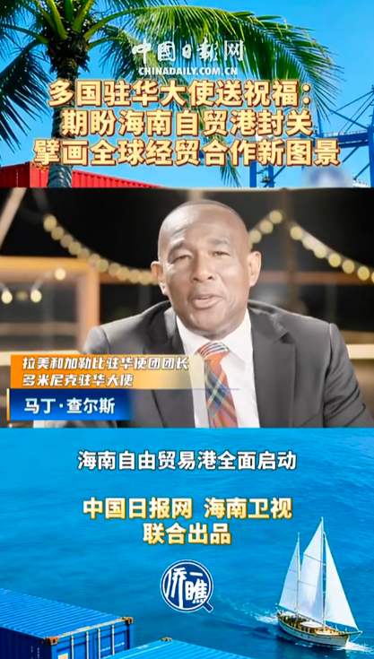 中国日报网12月18日电 2025年12月18日,海南自由贸易港将迎来全岛封关运作的历史性时刻——这一关键节点不仅标志着中国高水平开放的又一里程碑,更承载着深化全球经贸联结、共促繁荣的时代使命。值此之际,多米尼克驻华大使马丁·查尔斯、古巴驻华大使白诗德、委内瑞拉驻华大使雷米希奥·塞瓦略斯、牙买加驻华大使亚瑟·威廉姆斯、哥伦比亚驻华大使塞尔西奥·卡夫雷拉、新加坡驻华大使陈海泉、克罗地亚驻华大使达里欧·米海林等七国驻华使节,纷纷以真挚话语传递祝福与期待。