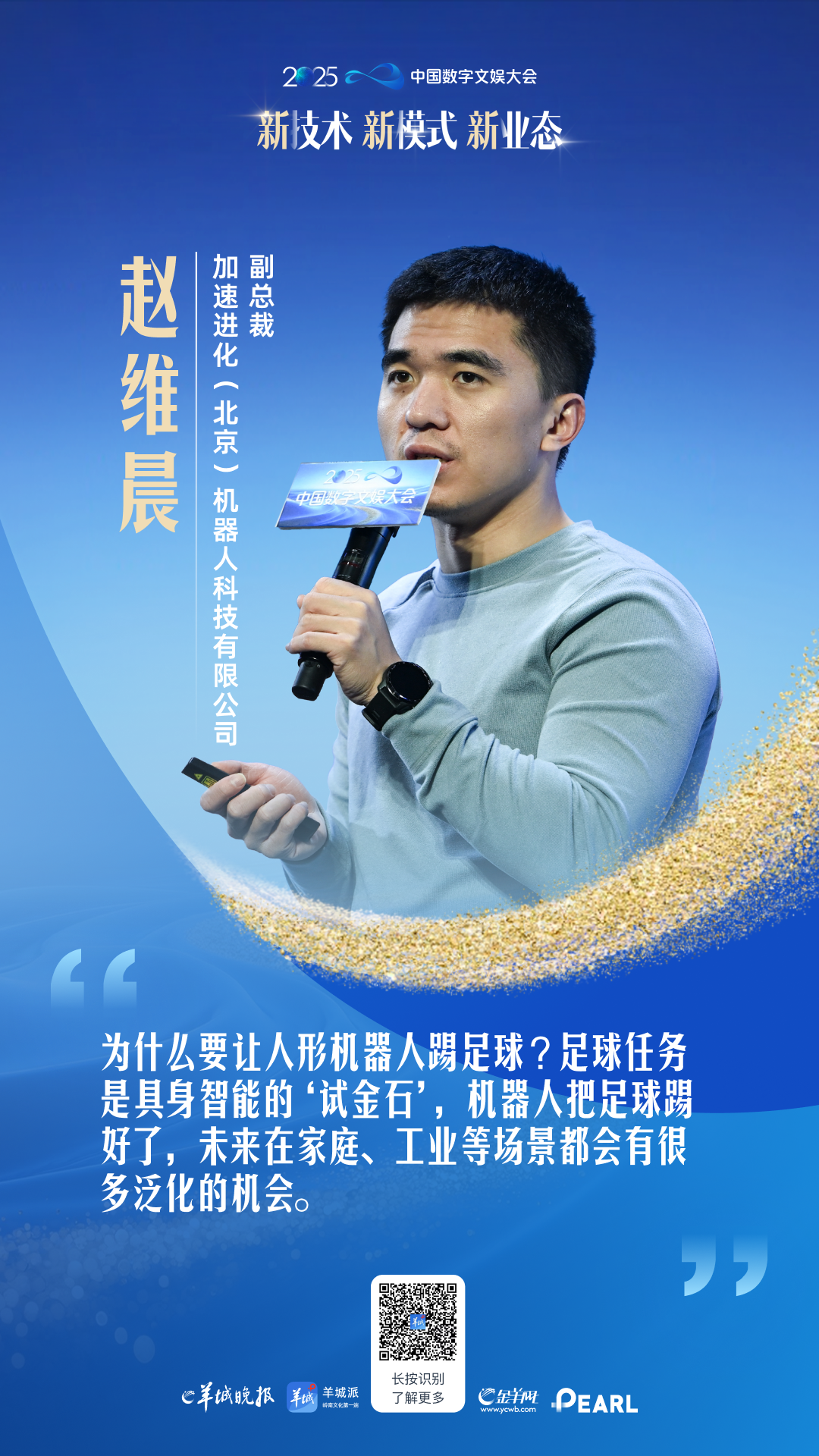 12月18日,“新技术 新模式 新业态”2025年中国数字文娱大会在广州举行。在当天下午举行的分论坛现场,加速进化(北京)机器人科技有限公司副总裁赵维晨分享了题为《从机器人足球世界杯到个人机器人普及》的专题报告,对上述问题作出了回答,并讲解了以足球竞技赛事赋能通用机器人普及的做法。