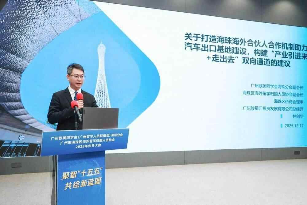 12月17日,广州海珠欧美同学会和海珠区海归协会2025年会员大会在海珠区粤传媒大厦召开。海珠区归国留学人员、海珠区相关职能部门负责人、海珠人工智能百人会数智企业代表约200人齐聚一堂,共绘海珠“十五五”发展新篇。