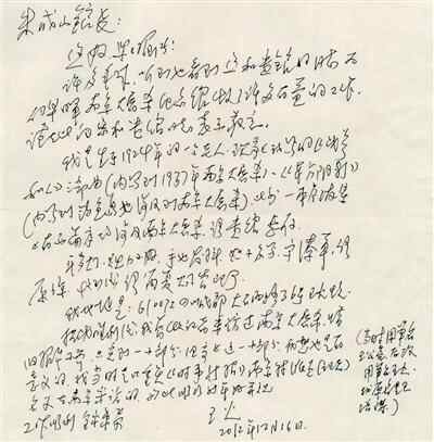 作家王火写给朱成山馆长的信侵华日军南京大屠杀遇难同胞纪念馆藏