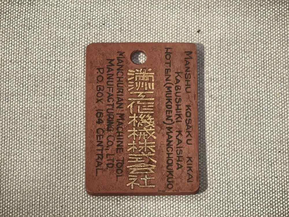 1051号战俘号码牌上印着“满洲工作机械株式会社”。新华社记者 武江民 摄