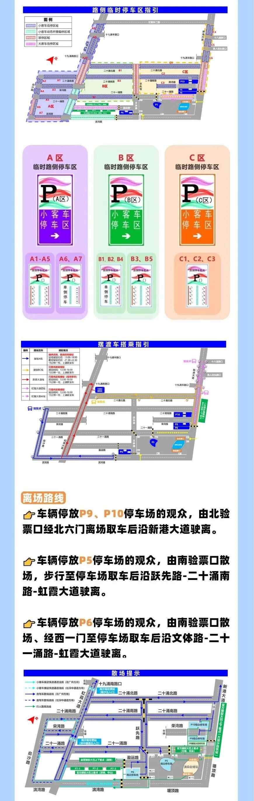 据记者了解,后续接驳安排主要包括四方面:一是优化摆渡车线路,新增新港大道、虹霞大道远端临时调度摆渡车,并加强标识指引与现场人员引导;二是严格规范车辆通行秩序,要求承运单位按既定路线和点位行驶停靠,散场高峰时段禁止空车离场;三是在各接驳点增设信息明确的引导指示牌;四是动态增配运力,根据实时客流加开临时班次。