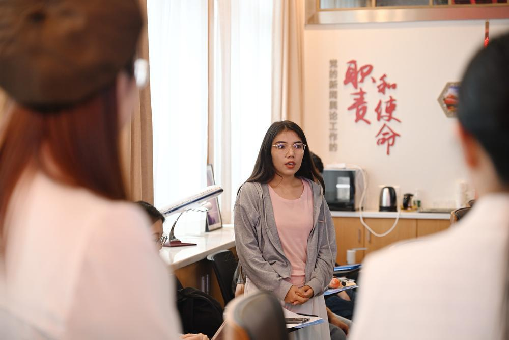 分发业务集群、对外传播部记者刘泳希,毕业于广外高翻学院,她表示外语能力在国际传播工作中起到了“放大器”作用,从参与全国两会、十五运会等重大报道的经历中,她深刻认识到“外语+技能”在羊晚的用武之地,并热情邀请学弟学妹们用语言专长,在更广阔的世界舞台上讲述中国故事。