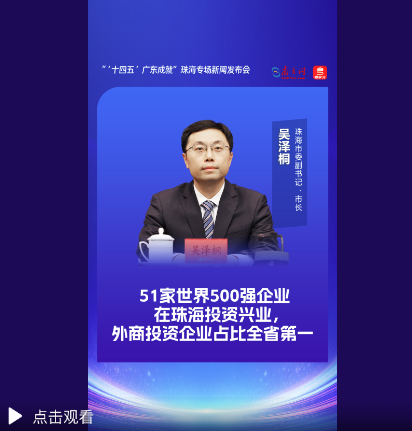12月12日,广东省人民政府新闻办公室召开“‘十四五’广东成就”珠海专场新闻发布会。珠海市委副书记、市长吴泽桐表示,五年来,珠海着力推进高水平对外开放,与220个国家、地区建立经贸关系,外贸进出口总额累计突破1.5万亿元,跨境电商进出口规模年均增长超100%,51家世界500强企业在珠海投资兴业,外商投资企业占比全省第一。