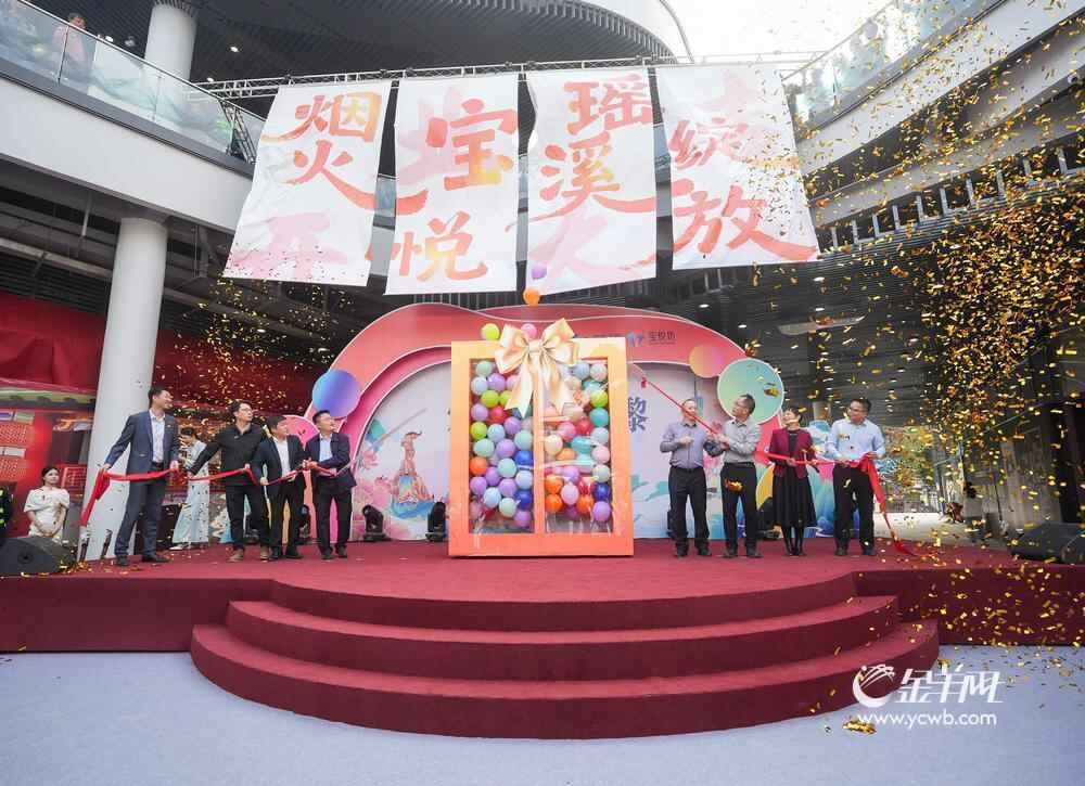12月12日,“宝悦坊”开业仪式在气势恢宏的岭南英歌舞表演中拉开序幕。表演结束后,与会嘉宾共同启动开业装置,随着彩色气球腾空而起,印有“烟火宝悦 瑶溪绽放”字样的四幅巨幔缓缓展开,标志着该项目正式投入运营。
