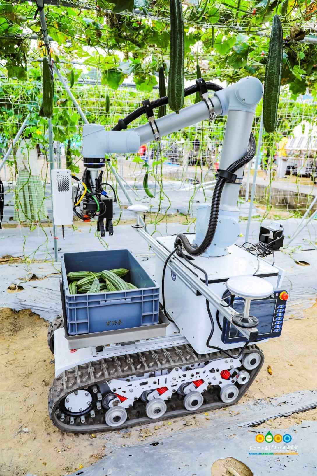 现代农业装备展宛若一个包罗万象的智慧农场,种苗高速嫁接机、移动式荔枝冻眠机、智能虫情测报灯、智能猪场模型……省内外40多家单位最新研发的200多台(套)机具和成果集中亮相并作田间演示,中国工程院院士罗锡文团队带来“耕种管收”全系列农机展示,助力擦亮“粤强农装”品牌。