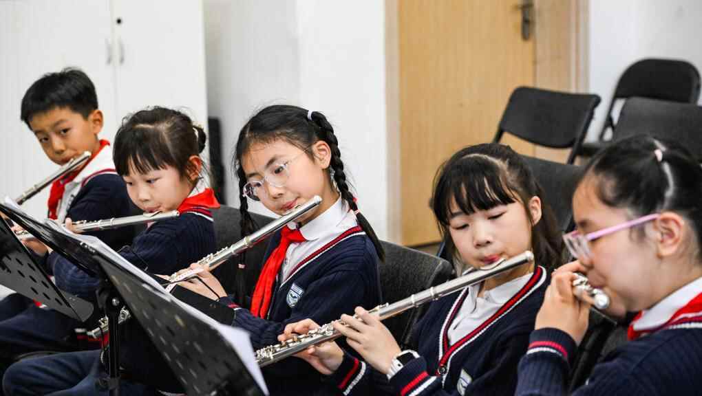 2025年3月27日,重庆市江北区的重庆巴川量子学校交响乐社团学生在练习乐器演奏。新华社记者 王全超 摄