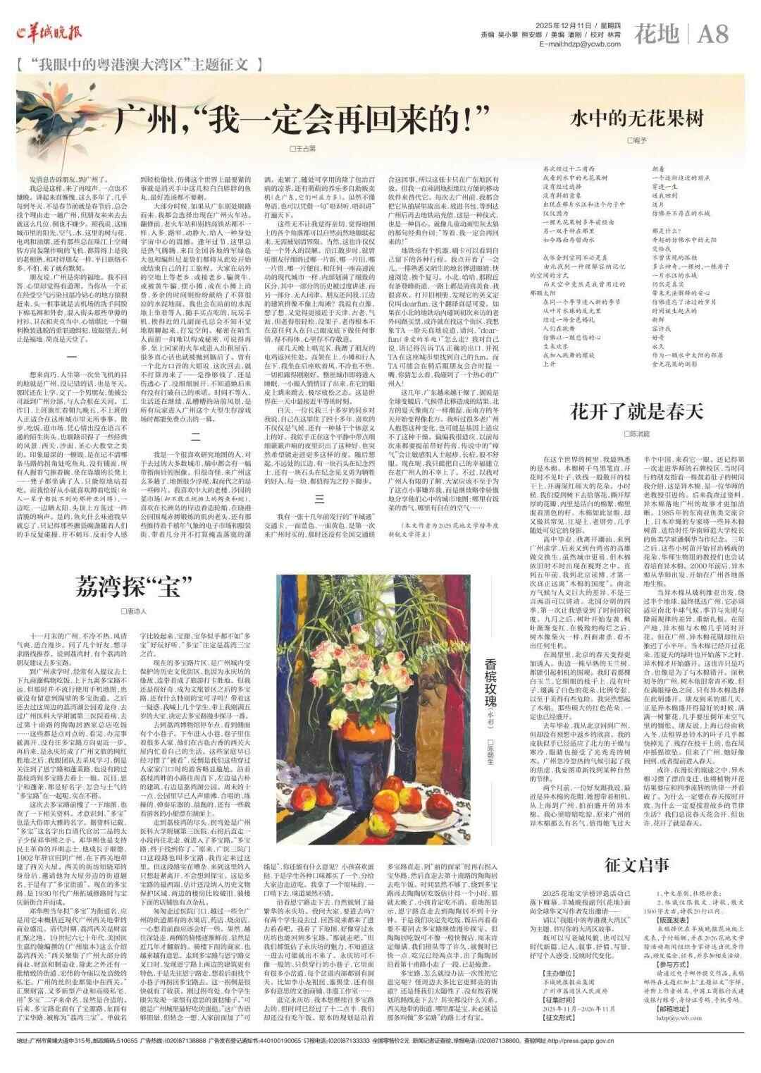 2025花地文学榜评选活动已落下帷幕,羊城晚报副刊《花地》面向全球华文写作者发出邀请——