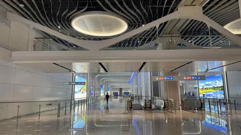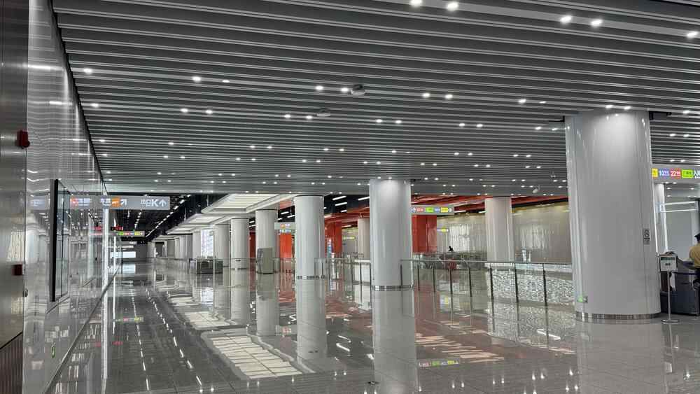 12月11日上午,记者首先来到芳村站。芳村站全长392米、深达38米,为超深地下四层车站。二十二号线芳村站作为广州首座落地国际竞赛装修的地铁车站,通过梳理车站的换乘流线,提炼了“建构一体”的概念,并首次采用弧形梁柱一体化创新结构体系,设置换乘大厅实现二十二号线与既有一号线、十一号线和规划城际线路快捷换乘。