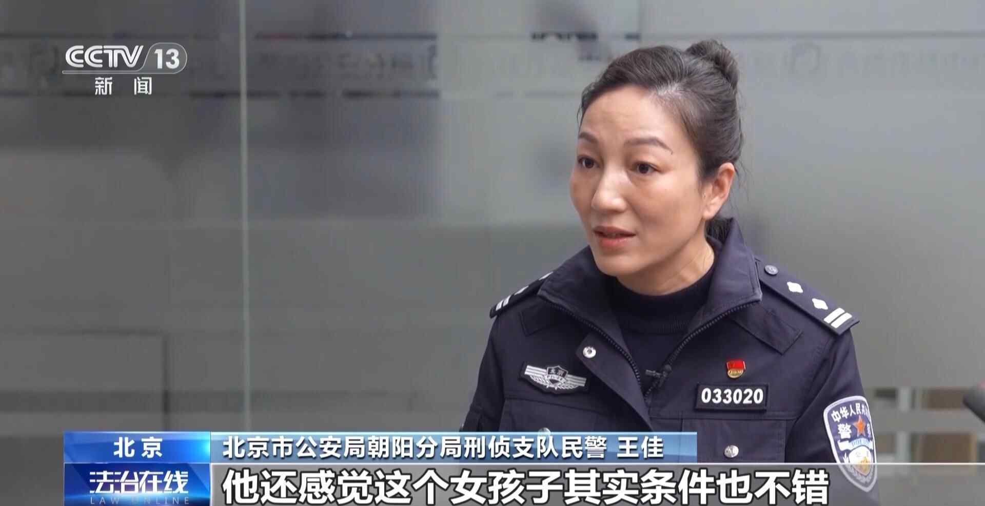 北京市公安局朝阳分局刑侦支队民警 王佳:接下来几天时间,他还感觉这个女孩子条件也不错,人的性格也是非常不错的,两个人就进入了恋爱的状态。