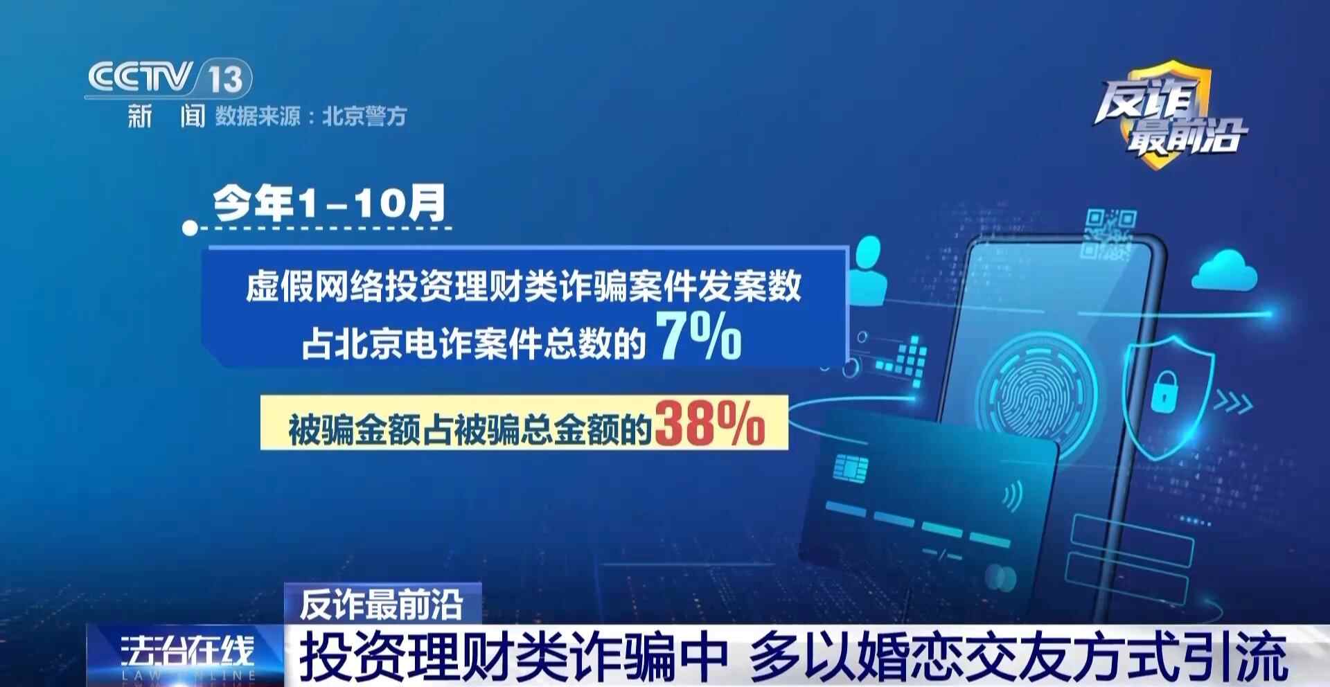 北京警方发布的数据显示,今年1—10月,虚假网络投资理财类诈骗案件发案数占北京电诈案件总数的7%,但被骗金额却占到了被骗总金额的38%。同时,高损案件多,在被骗金额100万元以上的案件中,近七成都是虚假网络投资理财类诈骗。在各类电诈案件中,虚假网络投资理财类诈骗案件的成案时间最长,从诈骗分子首次接触受害者到受害者报警,平均为36.7天。