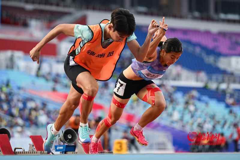 领奖台上,梁燕芬摸着铜牌叹了口气。她在接受采访时直言有些遗憾:“很复杂吧,也有如释重负,但是也有点遗憾,本来想拿更好的成绩,结果自己体能不太行。”但一天跑两场400米,对梁燕芬而言已经足够值得自信:“400米好长,上午要跑预赛,下午跑决赛,能完赛,我好棒!”