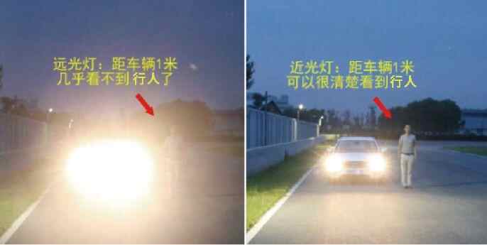远光灯的发光强度远高于近光灯,会使对向车辆驾驶人、骑行者、行人等因眩目而瞬间致盲。
