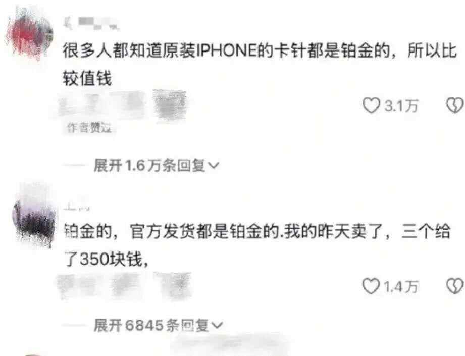 近日,苹果官网原价60元的取卡针因网传 “铂金材质、回收价超300元”, 引发热议。