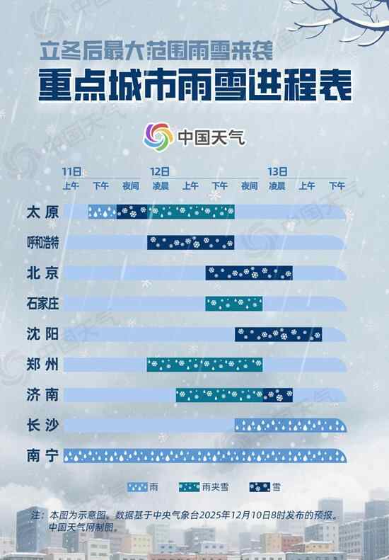 今天起,我国中东部会迎来立冬后最大范围雨雪过程,超10省份将迎气温大跳水。多地气温可能创下立冬后新低。