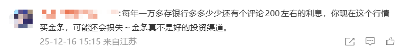 还有网友表示,每年一万多元存银行多少还有平均200元左右的利息,现在的行情买金条可能不是好的投资渠道。