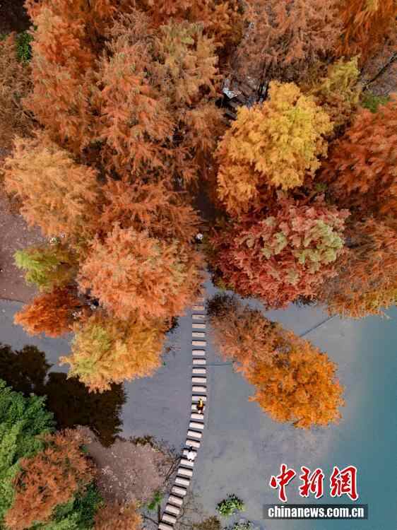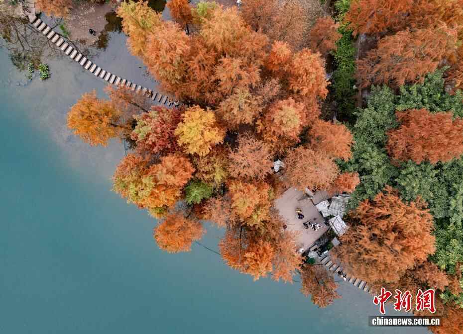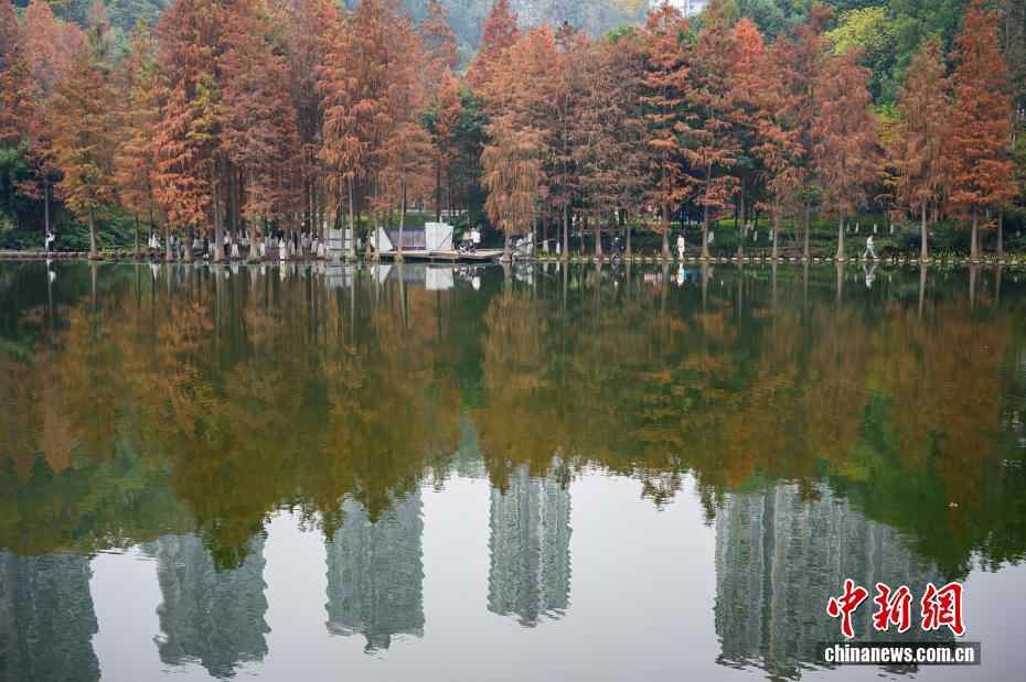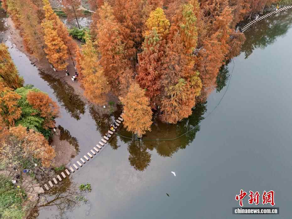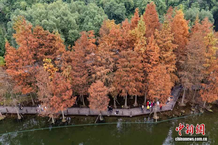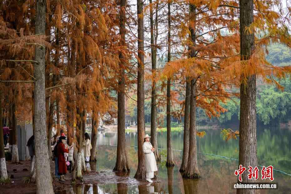 重庆彩云湖国家湿地公园冬日水杉“换装”引游人