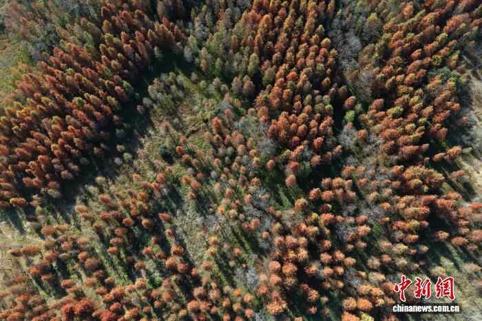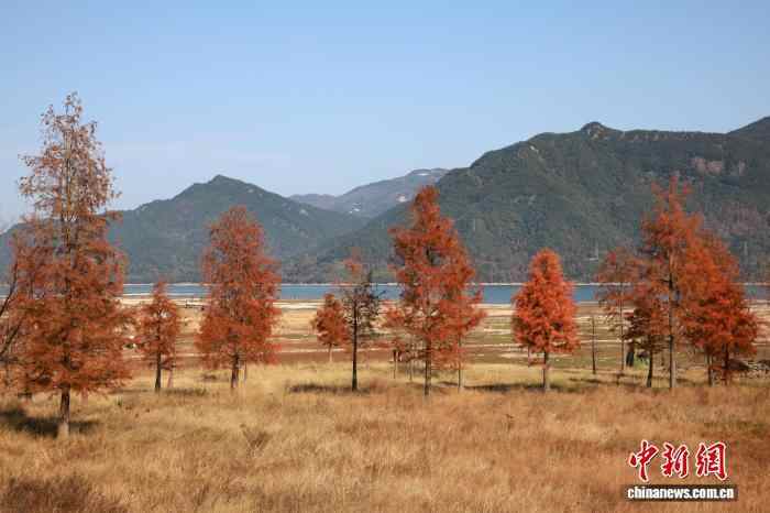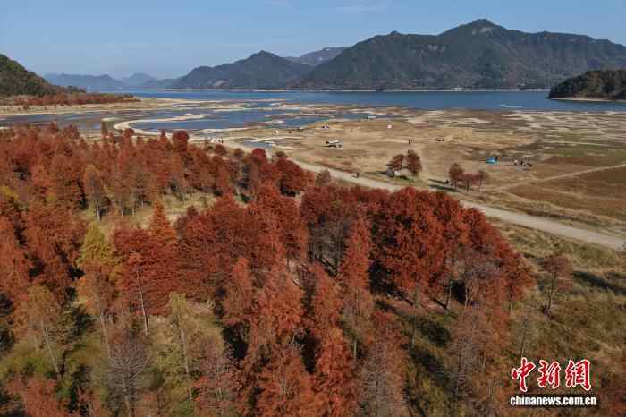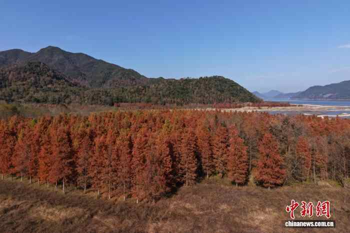 12月16日,浙江黄岩,长潭水库红杉林逐步变色,层林尽染美如画。孙杨洋 摄