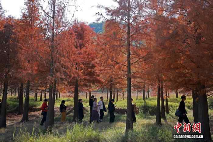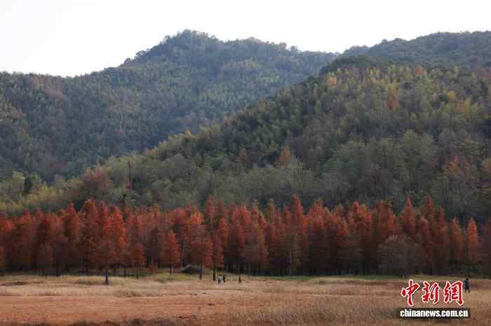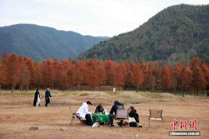 12月16日,浙江黄岩,民众在长潭水库红衫林游玩打卡。孙杨洋 摄