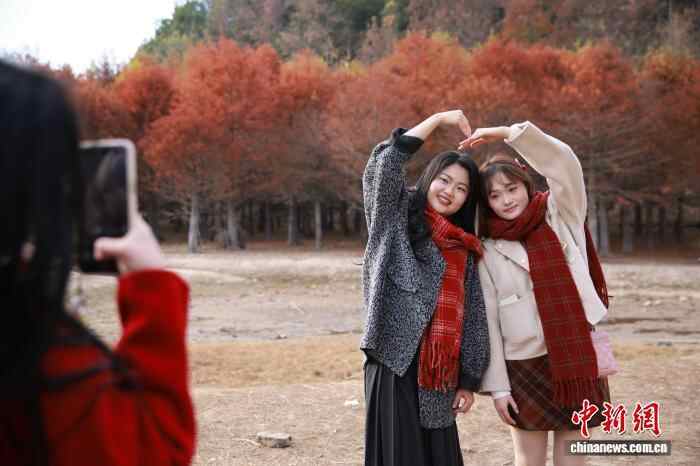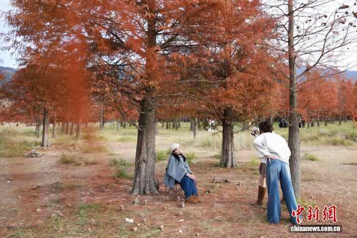 12月16日,浙江黄岩,民众在长潭水库红衫林拍照打卡。孙杨洋 摄