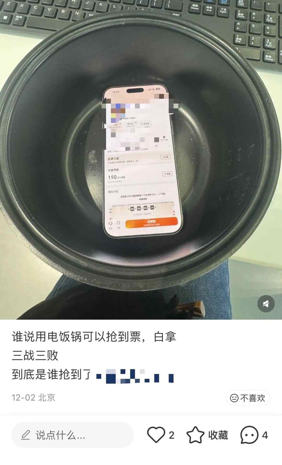 首先,这是典型的幸存者偏差。在大量尝试抢票的用户中,真正抢到票的比例本来就很低,而少数抢到票的人往往愿意主动总结经验并在社交平台上分享所谓成功秘诀。其中的某些人正好使用了电饭锅这一做法,于是在叙述中把两者建立起因果联系。