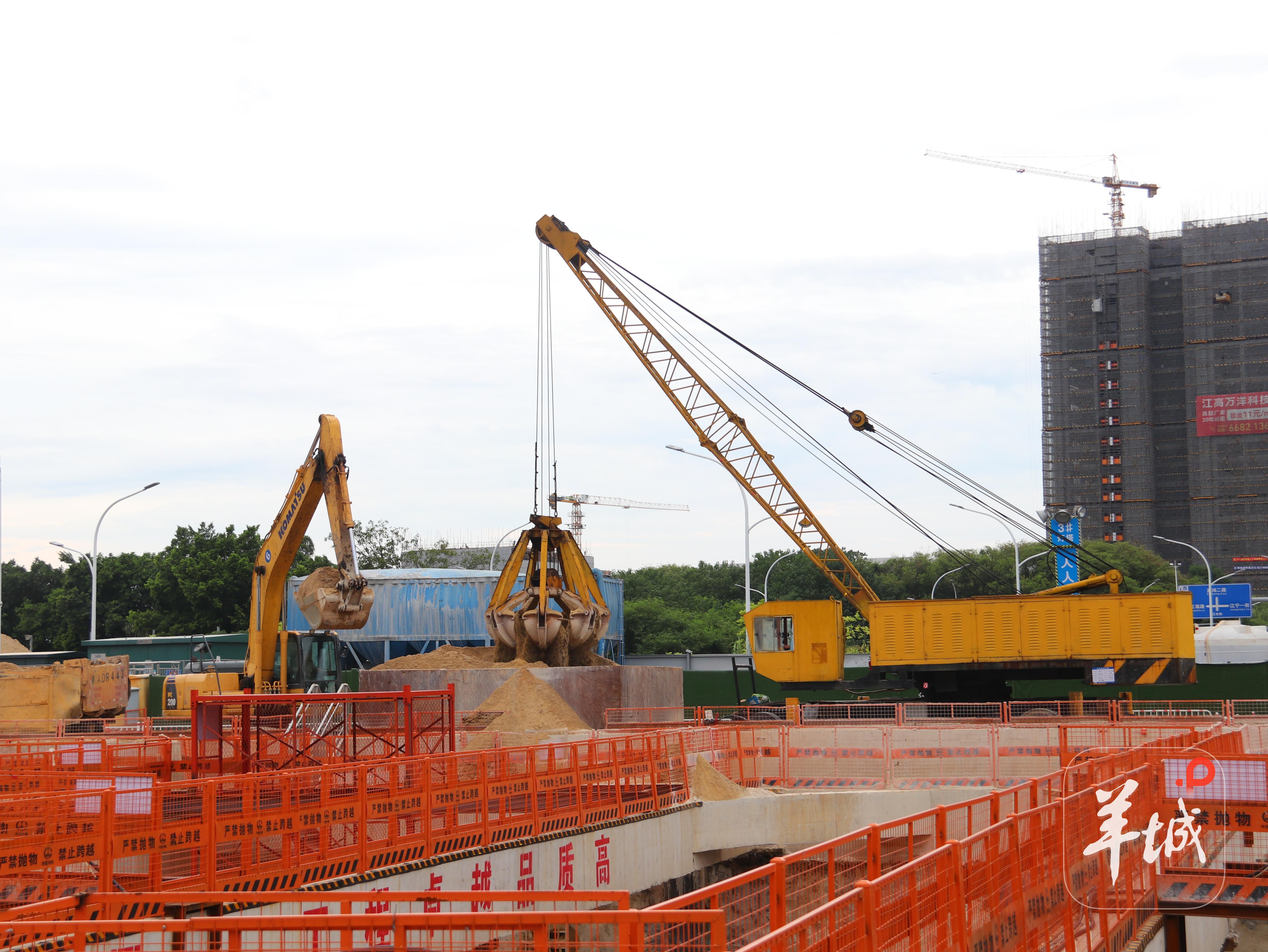 江府站地处白云区广花公路核心路段,全长362米、宽45.7米,开挖深度达18.3米,规模相当于两座标准车站。车站基坑地质条件较为复杂,开挖区域存在17.4米厚的中粗砂、砾砂层,并分布有4处超围护结构深度的风化深槽,基底砂层、粘土层及局部淤泥质土交错,地下水丰富,施工中需防范涌水涌砂等风险。同时,地层岩溶发育,呈现“上砂下岩、岩面起伏”特点,均匀性差,增加了施工难度。