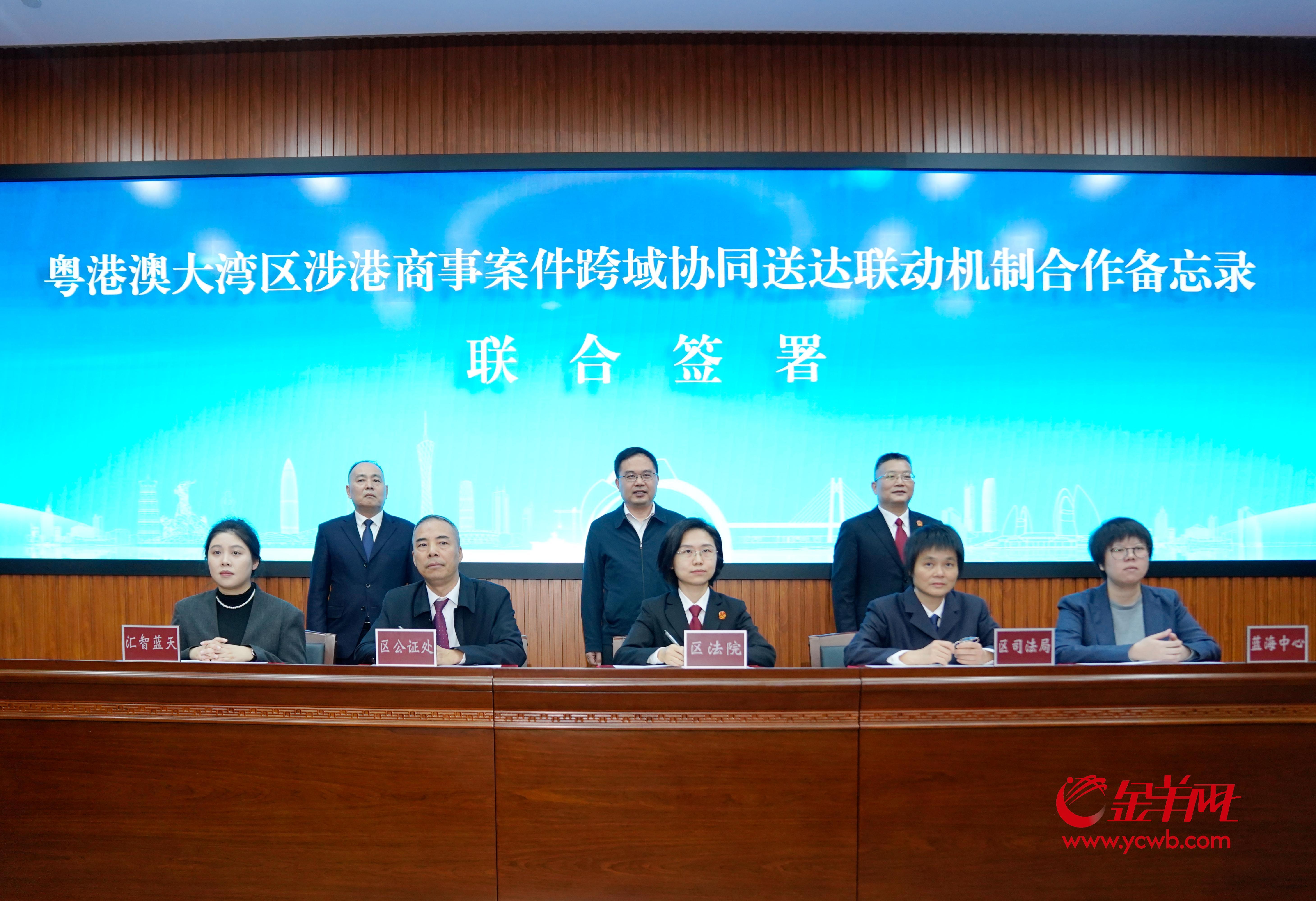 12月17日上午,广州市南沙区人民法院(广东自由贸易区南沙片区人民法院)联合广州市南沙区司法局、广州市南沙公证处、深圳市蓝海法律查明和商事调解中心及广州市汇智蓝天国际法律与商事服务中心暨“一带一路”域外法查明(广州)中心,共同签署《关于构建粤港澳大湾区涉港商事案件跨域协同送达联动机制合作备忘录》(以下简称《备忘录》),优化涉港商事案件送达程序,提升跨境商事纠纷解决质效,搭建平台助力深化司法规则衔接,为跨境司法协作提供“湾区样本”。