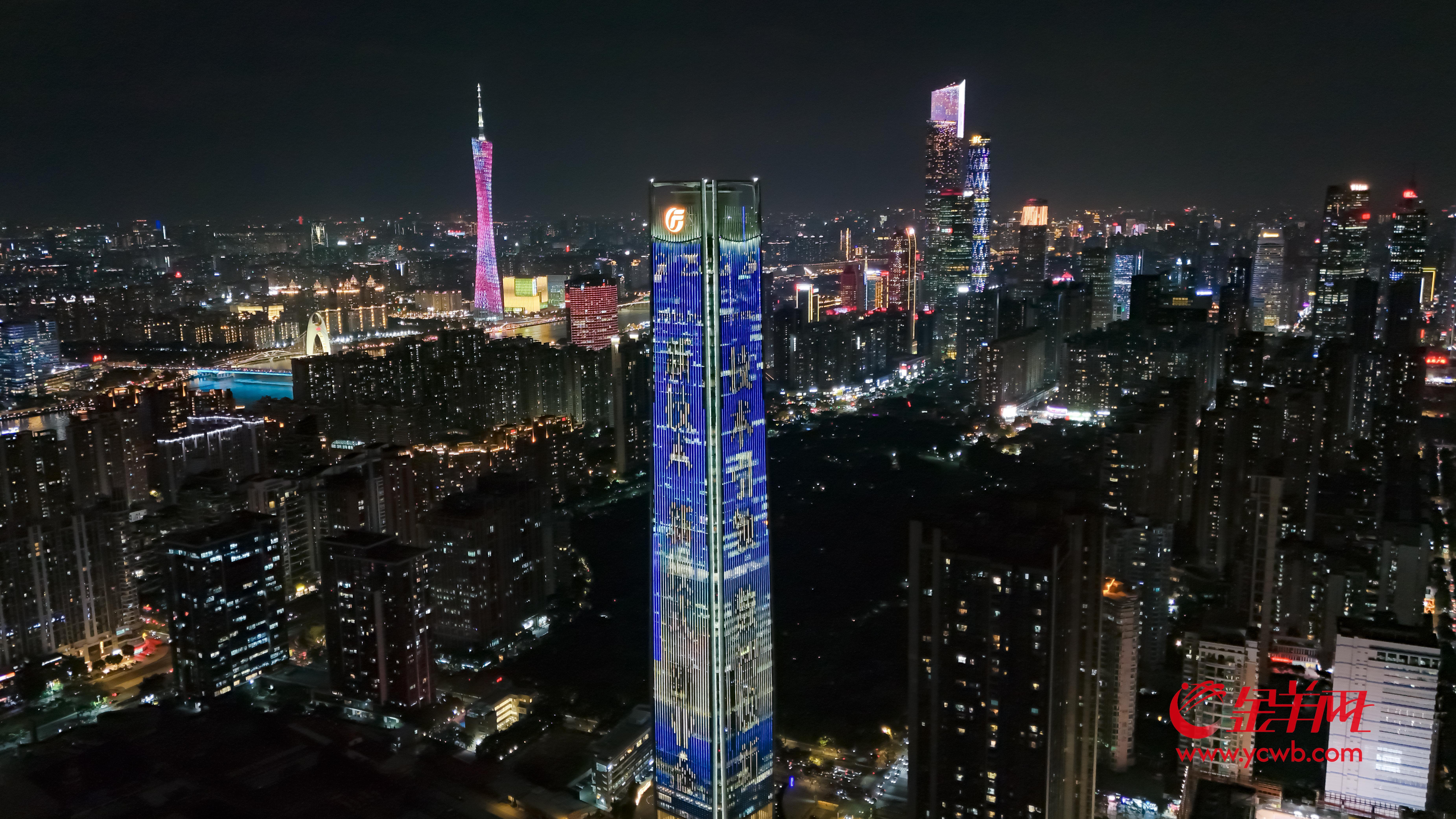 12月17日晚起,2025年中国数字文娱大会宣传语在308米高的广州广发证券大厦外墙巨幕滚动播放,与珠江新城璀璨的夜景交相辉映。