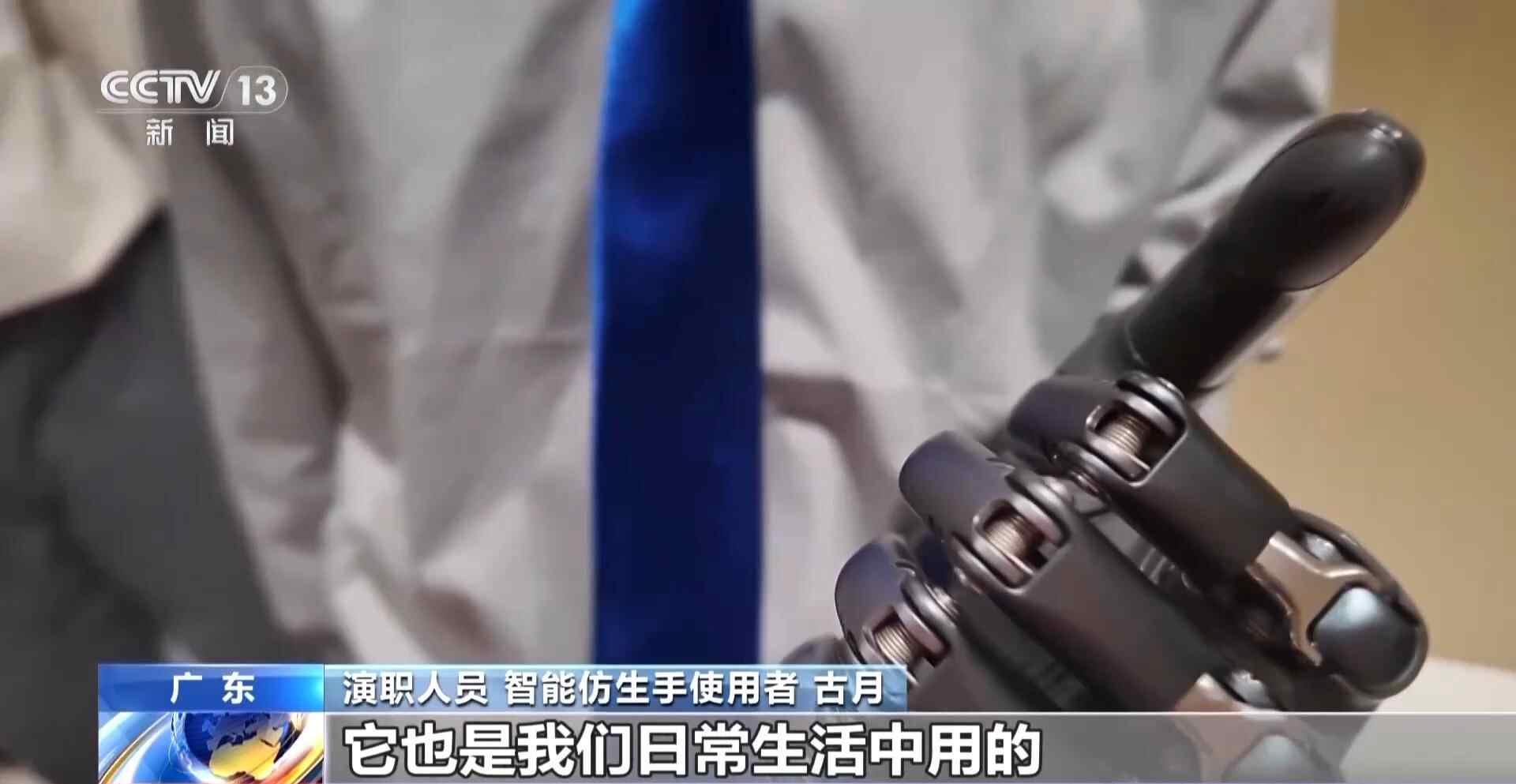 演职人员、智能仿生手使用者 古月:这个传感器它是非侵入式的,贴在我们身体上,它就可以采集到生物电流。我们的生物智能算法,能够将捕捉的生物电流解读出来,而且速度会特别快,比如说我马上想要动食指,它就几乎没有延迟,它也是我们日常生活中用的,甚至可以弹钢琴、写毛笔字等,让我们的生活更加丰富多彩。
