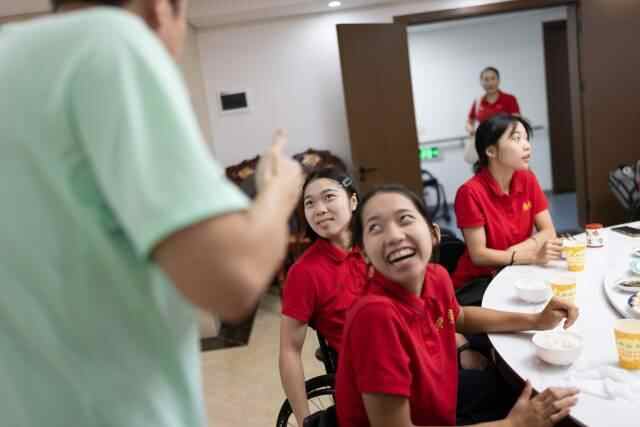 手部功能较好的梁绍颖,主动学习修剑技术,承担起帮其他队员修剑的任务;今年中秋节,队伍有了难得的聚餐,度过了一个难忘的节日;每个队员过生日,队里都会准备不一样的庆祝仪式……队员们从素不相识,到成为朋友、家人。