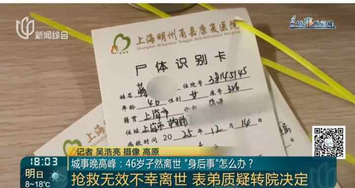 46岁的蒋女士居住在上海虹口区,父母早逝、未婚无子女,在今年10月突发脑溢血被同事紧急送到医院救治。