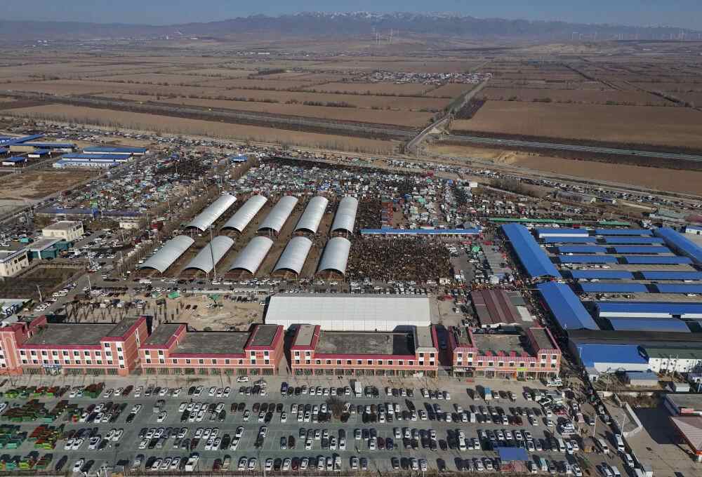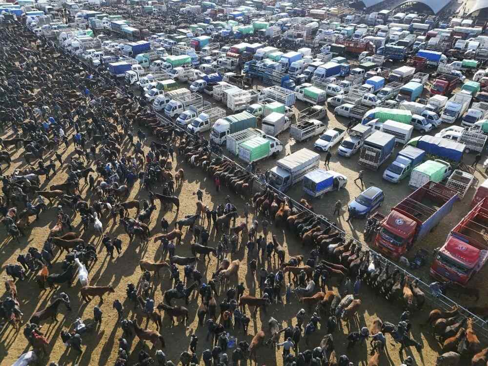 新疆创锦黄公农产品交易市场的马匹交易区(无人机照片)。