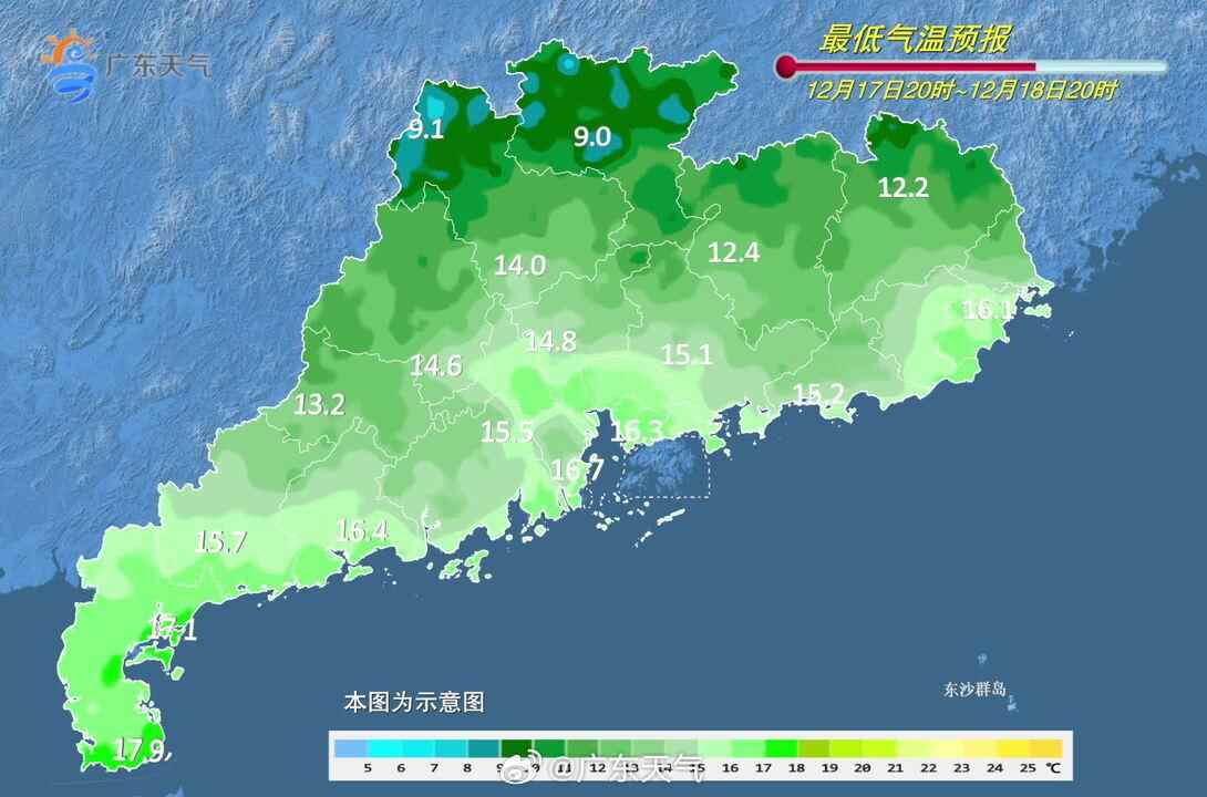 ◆预计,17-18日北方弱冷空气补充南下,广东省气温小幅波动,广东省大部多云为主,部分市县间中有零星小雨。19日受高空槽影响,广东省中东部降水有所增多。