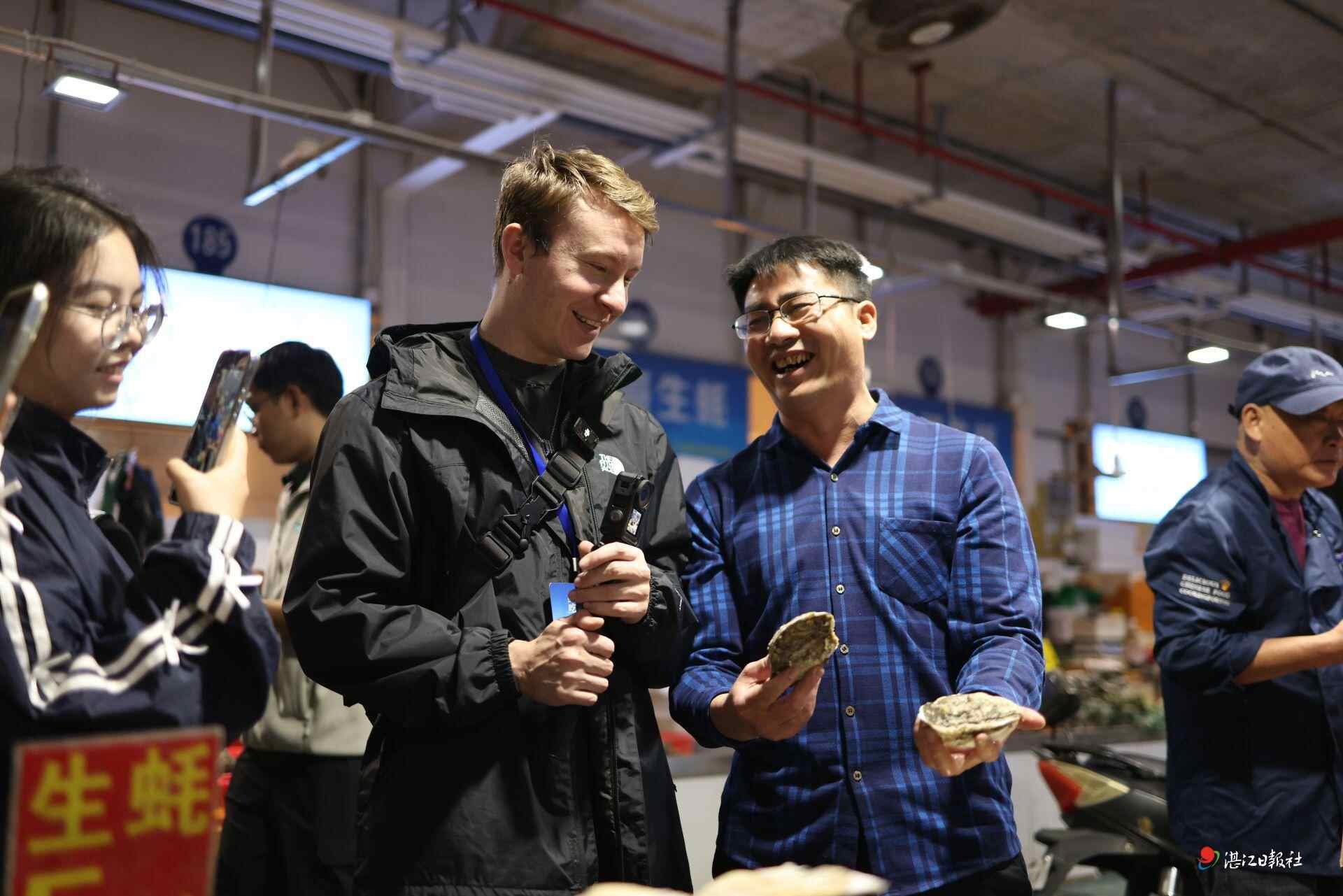 本次采风活动路线安排以海湾风情、火山奇观、极南风景、绿美生态、鲜美湛品、海鲜盛宴等为主线。其中,12月16日,上海媒体大V兴致勃勃地参观了广州湾法国公使署旧址、渔人码头、霞山水产品批发市场、湛江海豚湾、金沙湾,亲身参与“现捞现做”的海鲜采购和加工过程,深度体验“中国海鲜美食之都”魅力,感受港城休闲海湾氛围。