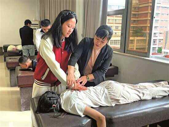 ■陈志怡在学校练习按摩手法,她计划考取资格证,成为盲人按摩师或从事相关职业。