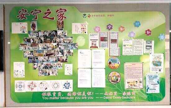 ■广州市第一人民医院住院部走廊墙上的“安宁之家”展板。 程羽/摄