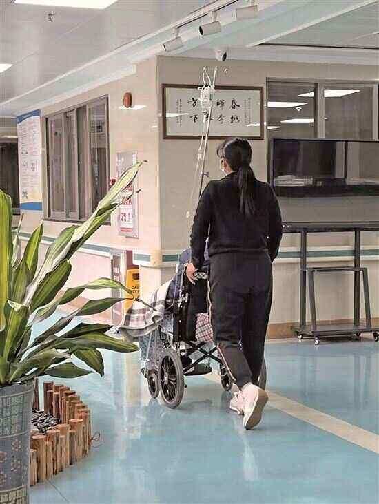 ■在安静整洁的医院走廊上,家属陪患者散心。程羽/摄