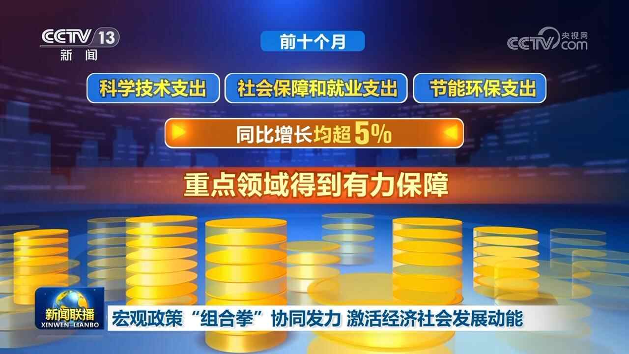 今年,财政政策更加积极。育儿补贴、养老服务补贴、个人消费贷款贴息等惠民政策直达个人。前十个月,科学技术、社会保障和就业、节能环保支出同比增长均超5%,重点领域得到有力保障。