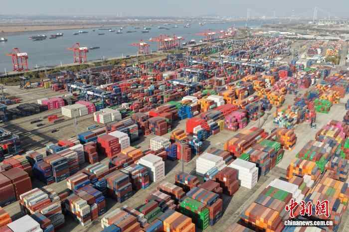 12月8日,航拍南京龙潭港进出口集装箱码头。当日,中国海关总署公布的最新数据显示,今年11月份,中国货物贸易增速回升,进出口总值3.9万亿元人民币,同比增长4.1%。(无人机照片)中新社记者 泱波 摄
